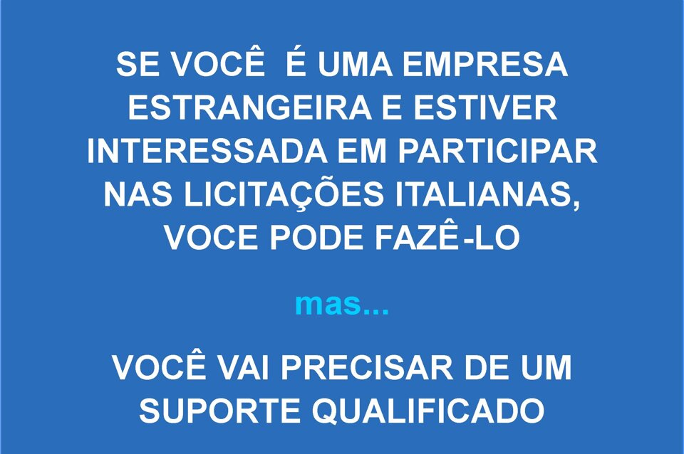 Ipergare fornece uma assistência completa na gestão das licitações públicas nas plataformas italianas (MePa, Sintel, Start, Sater-Intercent, eAppalti FVG, AVCPASS etc).