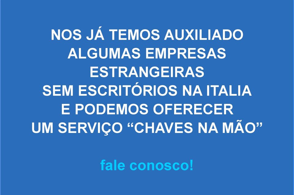 Nossa clientela inclui também empresas estrangeiras sem escritórios na Italia, que por razões óbvias têm dificuldade em enfrentar o labirinto da burocracia italiana e, outrossim, precisam de um suporte constante e qualificado.